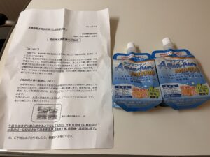 これが「アクアファン」。結局、オペ前には飲まず、入院期間中のちょっと喉が渇いた時にいただきました。