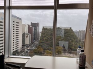 10:00 斜め向かいのベッドのKさん(81歳)が桜十字病院へ転院されました。昨日のうちに看護師さんへ「空いたら窓側に移動できますか?」と伝えておいたおかげで、窓側の広いスペース(13-3)に移動させてもらえました! 開放感が全然違います。入院生活を送る中で、窓から外の景色が見えるだけでも気が紛れます。