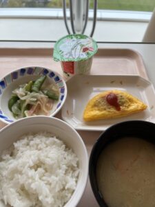 7:55 朝食 今日はリハビリが朝一の8:50スタートなので、朝ご飯も早く持ってきてくれた。