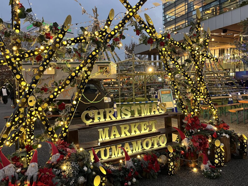 仕事を終えて、熊本駅に着くと博多と同様に、Christmas Marketをしてました!